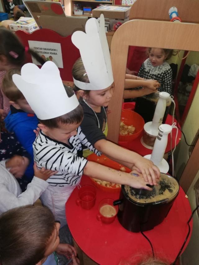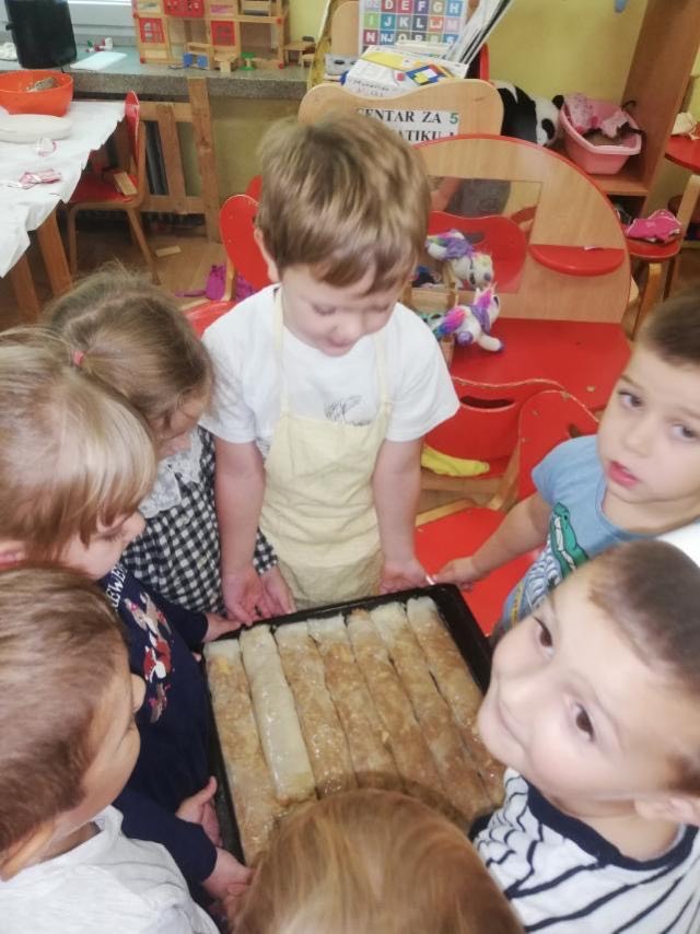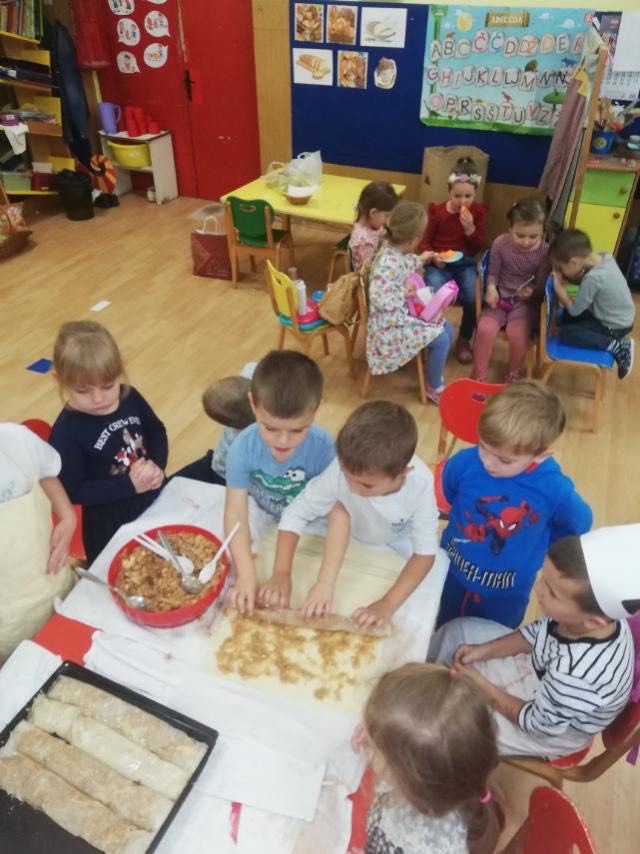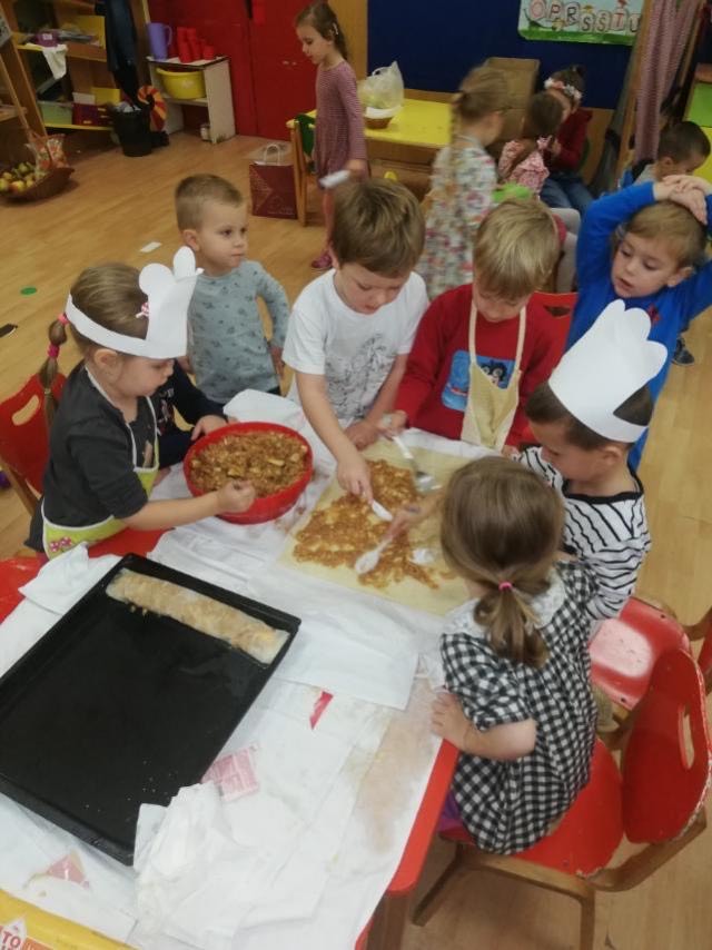Skupina Ribice obilježili su Svjetski dan jabuka kroz Istraživačko-spoznajne aktivnosti djeca su proučavala strukturu i obilježja jabuka, slikala, pjevala pjesmice, slušala priče. U suradnji s roditeljima sakupili smo jabuke koje smo iskoristili za izradu štrudle i soka od jabuka, učeći pritom o zdravim navikama i važnosti voća – jabuke u prehrani.