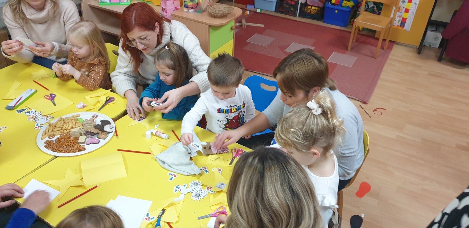 Povodom nadolazećih blagdana u našem vrtiću organizirana su božićna druženja i radionice za djecu, roditelje, odgojitelje.. Djeca su na radionicama pjevali božićne pjesmice, pokazali različite koreografije ali i izrekli nekoliko recitacija. Nakon kratkih programa, odgojiteljice su pripremile različite materijale za izradu čestitki, ukrasa.. zajedno smo kitili borove, ukrašavali sobe i proveli predblagdansko vrijeme u veseloj i pozitivnoj atmosferi.