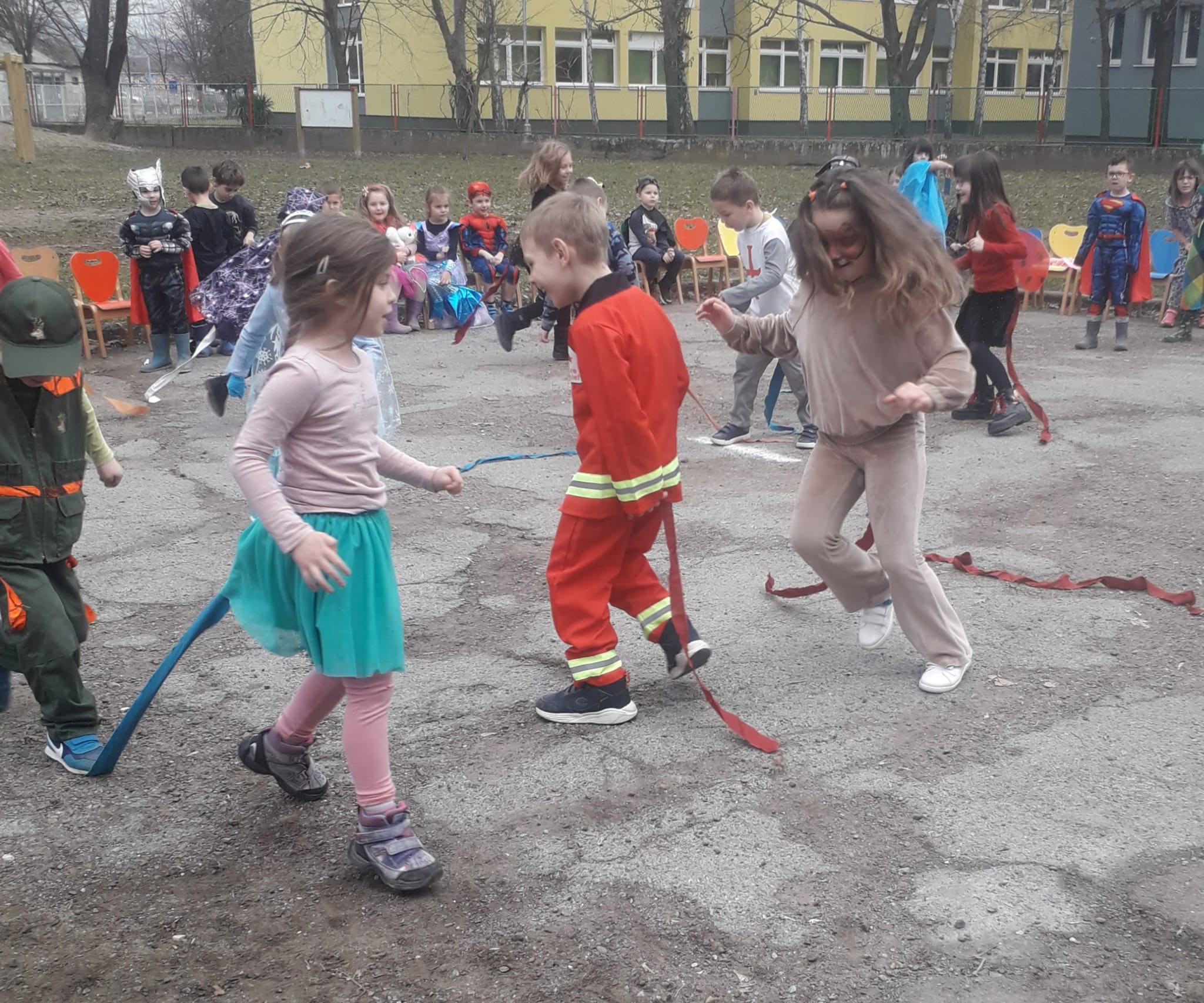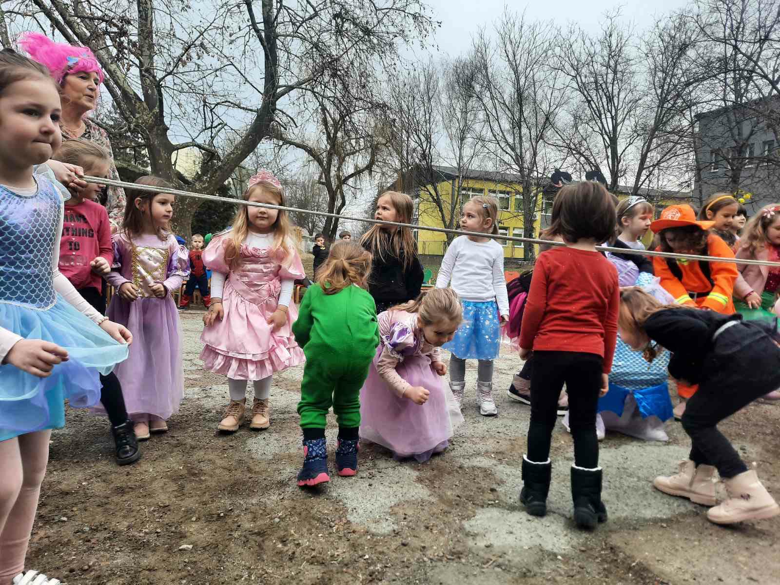 Veljača je tradicionalno vrijeme veselja, maskiranja, ludovanja….Tijekom tjedna djeca jasličnih i vrtićkih skupina su se maskirala i pretvarala da su netko drugi. U petak smo na zajedničkom druženju svih vrtićkih skupina kroz vesele, zabavne i natjecateljske igre pjesmom, igrom i veseljem priveli tjedan kraju i nadamo se uplašili zimu i pozvali proljeće da nam dođe.